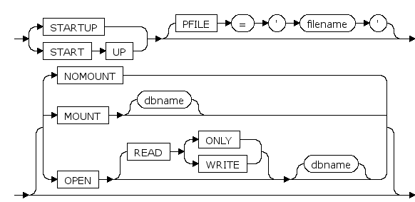- MOUNT数据库:装载指定的数据库,装配数据库是将一个数据库与已启动的实例相联。如果不指定dbname,则使用默认的数据库。