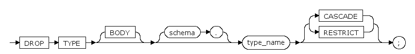 drop_type ::= DROP TYPE [BODY] [schema.]<type_name> [ CASCADE | RESTRICT ];