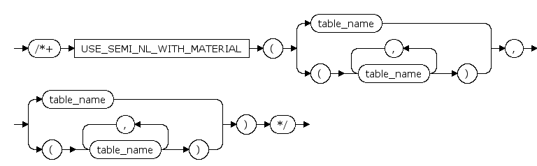 explain select /*+ use_semi_nl_with_material((a,b),c_alias@sel$2) */ * from a, b, c