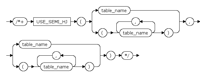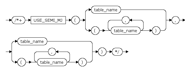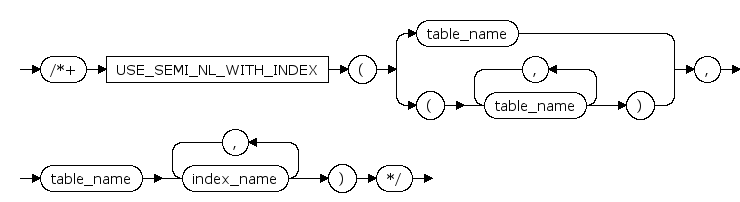 explain select /*+ use_semi_nl_with_index((a,b) , c_alias@sel$2 c1_index ) */ * from a, b, c