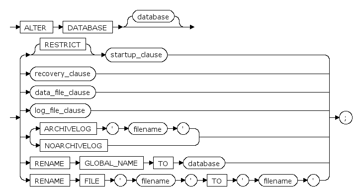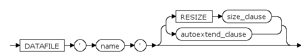 用于更改一个已有的数据文件的长度(RESIZE子句)或自动增长属性(autoextend_clause子句)