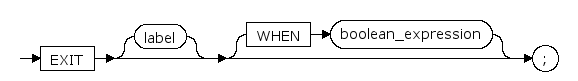 如果EXIT语句没有给出标签label,那么退出最内层的循环,然后执行跟在END LOOP后面的语句。如果给出标签,那么必须是当前或更高层的嵌套循环块的标签。然后该块就会终止,而控制落到对应循环END语句后面的语句上。