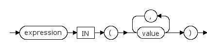 IN的这种形式的右手边是一个用圆括弧括起来的标量表达式的列表。 如果左手边的表达式的结果等于任何右手边表达式的结果中的一个, 那么整个表达式的结果就是真。它是下面的表示法的缩写: