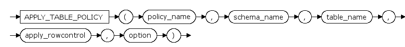 apply_table_policy ::= APPLY_TABLE_POLICY ( policy_name , schema_name , table_name , apply_rowcontrol , option )