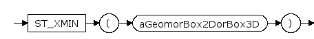 SELECT ST_XMin('BOX3D(1 2 3, 4 5 6)');