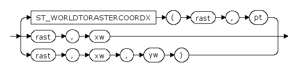 ST_WorldToRasterCoordX — 返回点几何图形的栅格中的列(Pt)或在栅格的世界空间参考系中表示的X和Y世界坐标(xw,yw)。