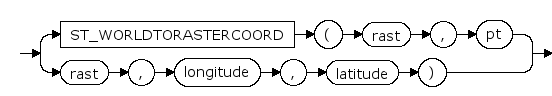 ST_WorldToRasterCoord — 在给定几何X和Y(经度和纬度)或以栅格的空间参考坐标系表示的点几何图形的情况下,将左上角返回为列和行。