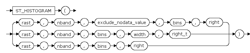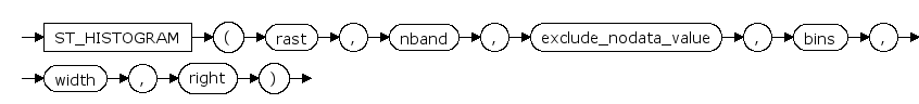 ST_Histogram — 返回一组记录,其中汇总了栅格或栅格覆盖率数据分布的单独面元范围。如果未指定,则自动计算垃圾箱的数量。
