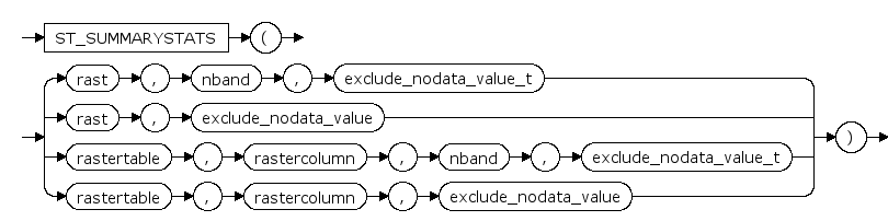 FROM ST_SummaryStats('test_summarystats', 'rast', 1, TRUE);