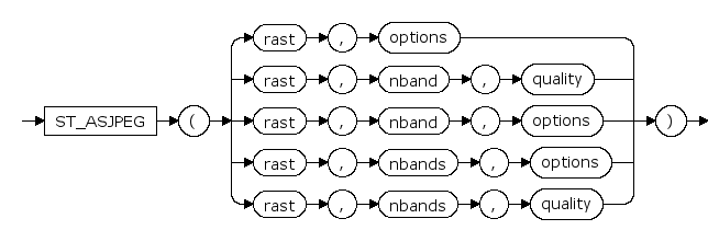 SELECT ST_AsGDALRaster (ST_Union (rast), 'JPEG', ARRAY ['QUALITY=50']) As rastjpg FROM mydata.mytable WHERE rast && ST_MakeEnvelope (10, 10, 11, 11);