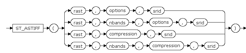 ST_AsTIFF — 将栅格选定波段作为单个TIFF图像(字节数组)返回。如果未指定标注栏或栅格中不存在任何指定标注栏,则将尝试使用所有标注栏