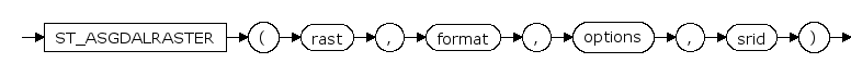 ST_AsGDALRaster — 以指定的GDAL栅格格式返回栅格平铺。栅格格式是编译后的库支持的格式之一。使用ST_GDALDrivers()获取您的库支持的格式列表。