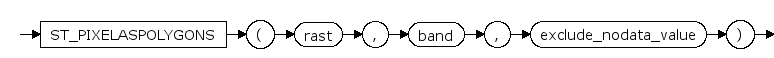 ST_PixelAsPolygons — 返回限定栅格带的每个像素的多边形几何图形,以及每个像素的值、X和Y栅格坐标。