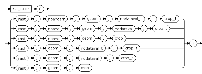 ST_Clip — 返回由输入几何图形剪裁的栅格。如果未指定波段编号,则处理所有波段。如果 crop 未指定或为TRUE,则将裁剪输出栅格。