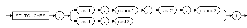 SELECT r1.rid, r2.rid, ST_Touches(r1.rast, 1, r2.rast, 1) FROM dummy_rast r1 CROSS JOIN dummy_rast r2 WHERE r1.rid = 2;