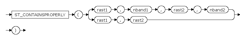 SELECT r1.rid, r2.rid, ST_ContainsProperly(r1.rast, 1, r2.rast, 1) FROM dummy_rast r1 CROSS JOIN dummy_rast r2 WHERE r1.rid = 2;