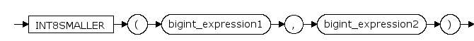 int8smaller ::= INT8SMALLER ( bigint_expression1 , bigint_expression2 )