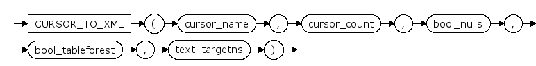 该函数以游标作为输入,将表数据映射为XML值,返回值为XML类型。(兼容PostgreSQL)