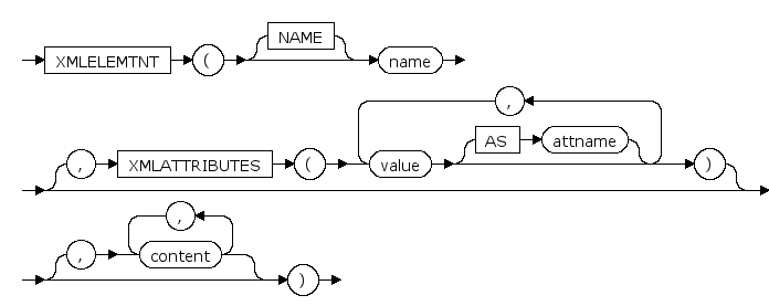 SQL> SELECT xmlelement(name foo, xmlattributes(current_date as bar), 'cont','ent');