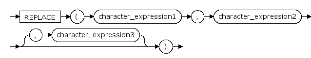 用一个字符串替换另一个字符串的指定子串,即用character_expression3替换character_expression1中内容为character_expression2的子串。
