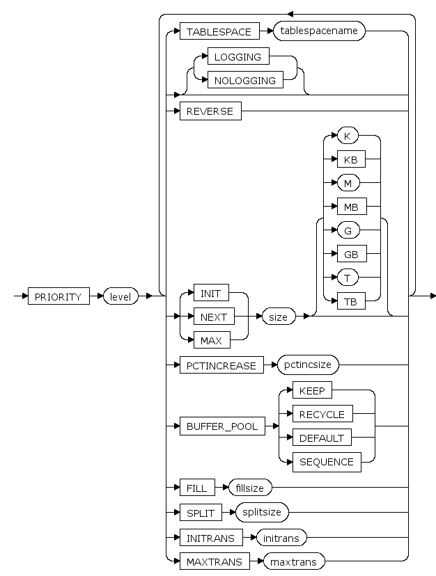 ALTER INDEX idx2 REBUILD LOGGING INIT 2M NEXT 4M MAXSIZE UNLIMITED FILL 70 SPLIT 50;