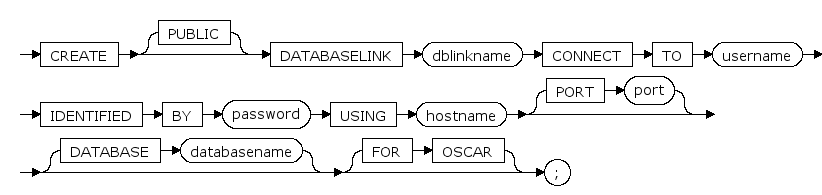 create databaselink db_oscar connect to sysdba identified by 'szoscar55' using '10.0.4.59' port 2003 database 'osrdb';