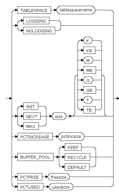 表空间大小的初始值, K,KB,M,MB,G,GB,T,TB分别是可选的字节单位