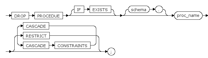 - CASCADE|CASCADE CONSTRAINTS强制删除存储过程,并删除任何与本存储过程有依赖性的数据库对象。