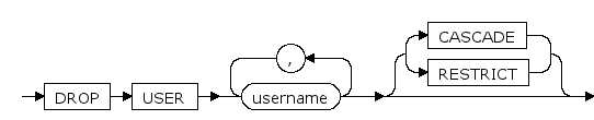 - RESTRICT只有用户所拥有的schema和其他对象上没有依赖时才会删除用户。