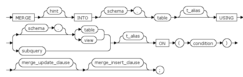 MERGE可以从源数据中通过条件限制选择出一行或者是多行数据对目标表或者目标视图进行更新或插入操作。
